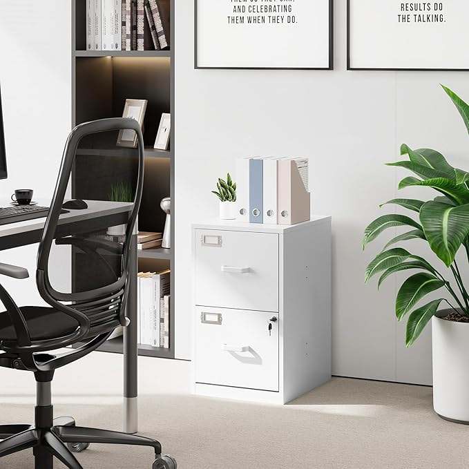 - 【UNIQUE DESIGN】This file cabinet can lock 2 drawers at the same time with one lock, and is equipped with 2 keys. Business card holders on drawers can also be labeled according to the different documents stored.