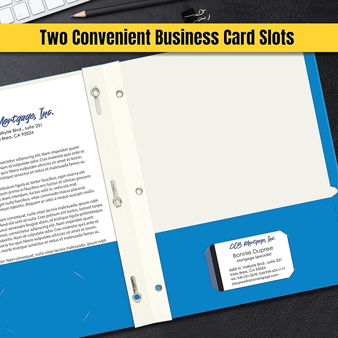 - 2 FLAT POCKETS: Each folder features two spacious 3.75" pockets to hold loose papers and includes two business card slots for easy access to contact information or personalized inserts.