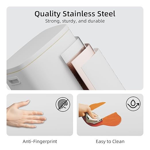 - ✨ Fingerprint-Proof Stainless Steel: Sleek brushed steel resists fingerprints, water, and stains—simply wipe clean for a spotless look. Durable construction stands up to daily use in kitchen, bathroom, or office.
