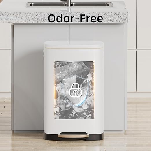 - 🚮 Large Capacity & Odor Lock Technology: 50L (13 Gallon) extra-large capacity reduces frequent trash runs, perfect for busy kitchens. Sealed lid with odor-blocking design traps smells, keeping your space fresh and clean.
