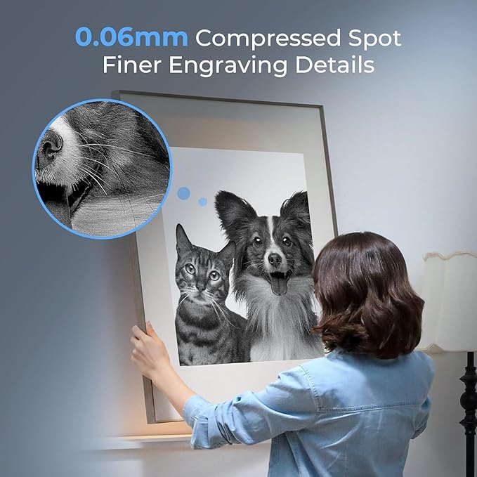- ENGRAVING & CUTTING MASTER - With all aluminum alloy made structure and steel shaft wheel guide rail design, Creality laser printer engraver is also equipped with strong belt tension adjustment device and 0.06*0.06mm super fine spot focus, enable engraving/cutting accuracy precisely controlled within 0.004 inches,repositioning accuracy less than 0.007 inches