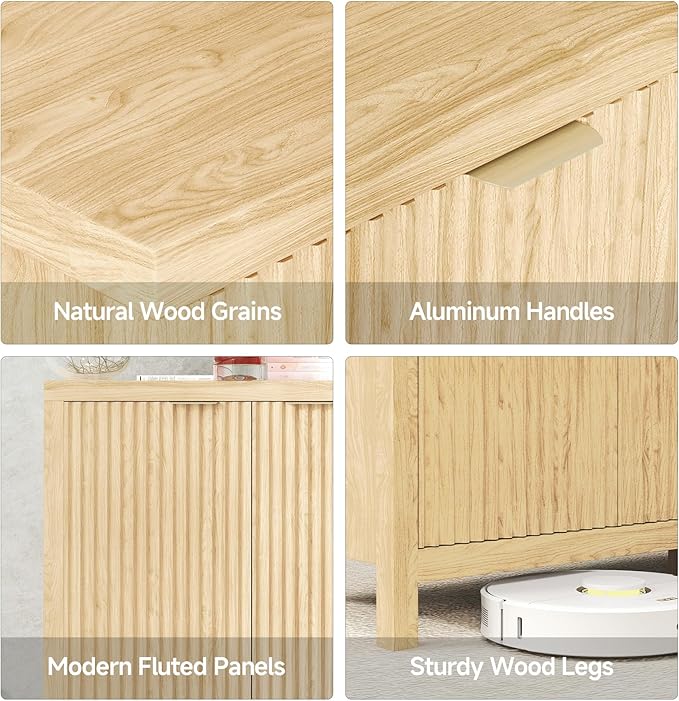 - Sturdy and Safe: The fluted sideboard cabinet with drawers has wall mount devices design for increased safety. Made of high quality wood, the fluted panel uses the latest vacuum forming technology and the metal handle is simple and elegant, preventing scratches and injuries during use