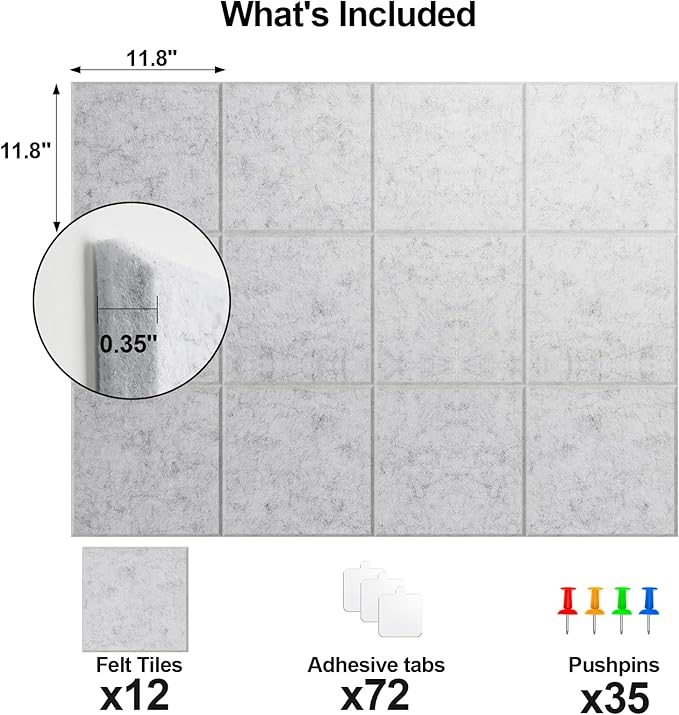 - GOOD SOUND INSULATION AND STRONG IMPACT RESISTANCE: Large area felt board helps reduce echo and noise in the room, making it the best choice for home offices, schools, children's rooms, recording studios, or any other commercial environment. Strong impact resistance can also protect your walls from wear and tear.