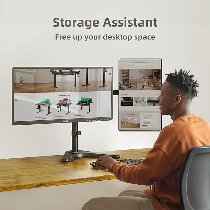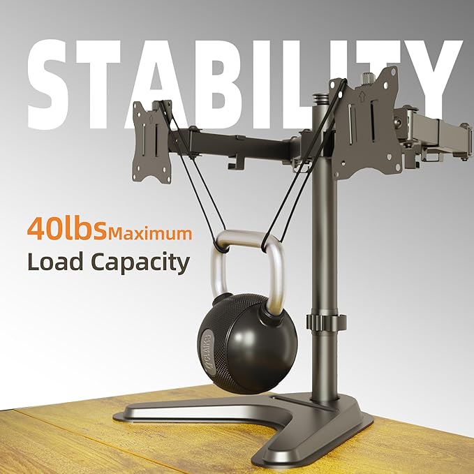 - Full Motion Adjustment: This monitor stand offers multi adjustability with +90°/-90° swivel, and +45°/-45° tilt. These features allow for optimal screen positioning to enhance workspace organization and efficient use of desk space.