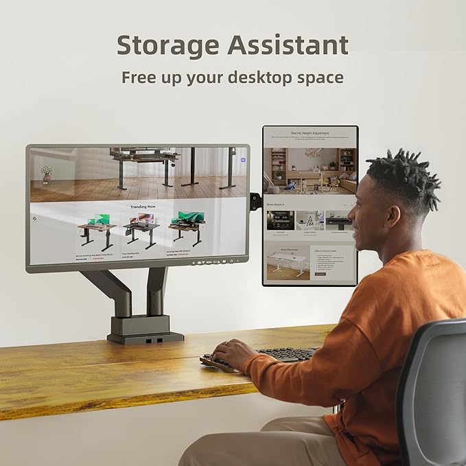 - Ergonomic Comfort: The Claiks monitor mount allows you to extend the screen and raise the arm up to 20" above the desktop. This ergonomic design reduces neck, eye, and back strain by positioning the screen at an optimal viewing angle.