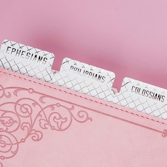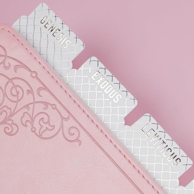 - Large Print, Easy to Read & Easy to Install:Silky velvet touch laminate,carefully designed pretty Bible accessories . The peel-and-stick Bible index tabs are self adhesive, simply align them with the provided guide or place them creatively.