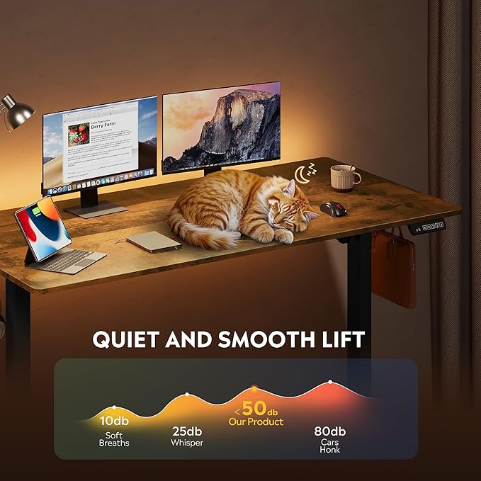 - 【Quite & Smooth Height Adjustments】Tri-motor system delivers whisper-quiet (<50dB) height transitions (28.35"-46.45") in seconds, eliminating manual adjustments and prevent desktop tilting. Standing desk adjustable height perfected for ergonomic shifts, ensuring buttery-smooth operation whether sitting or standing.