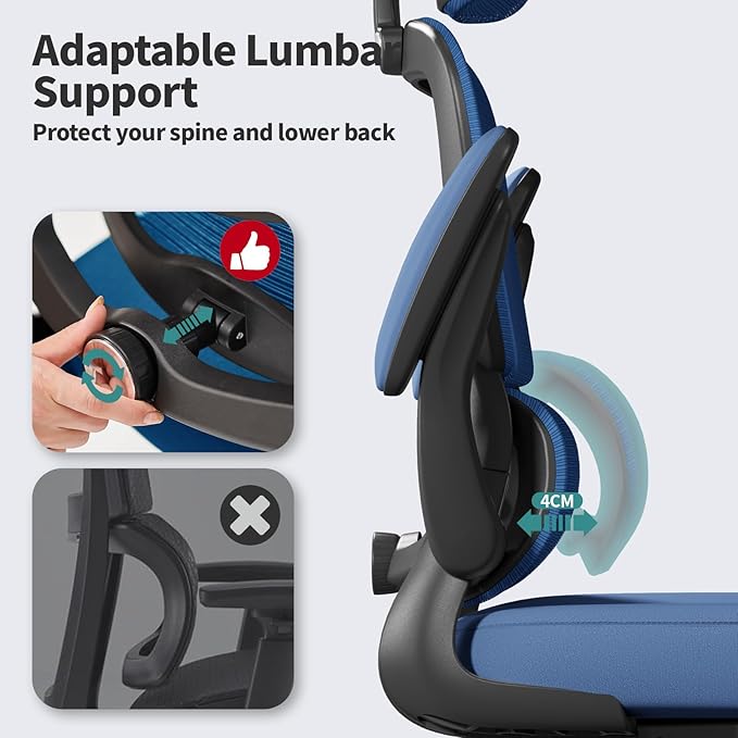 TRALT Office Chair Ergonomic Desk Chair, 330 LBS Home Mesh Office Desk Chairs with Wheels, Comfortable Gaming Chair, High Back Office Chair for Long Hours (Blue)