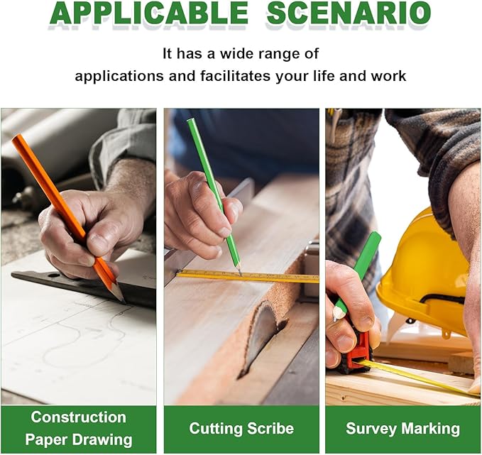 - Multipurpose: wood carpenters pencil can withstand the pressure of marking on hard, rough, and uneven surface materials, such as wood, plywood, cardboard, unprocessed wood, wood, paper, concrete, bricks, and so on
