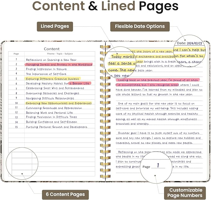 - Sturdy Construction: Our Lined Spiral Journal Notebook is built to last with a sturdy metal twin-wire binding and a tough hardcover. The water-resistant cover shields your notes from damage, while the double-wire design allows for easy folding and flat laying.