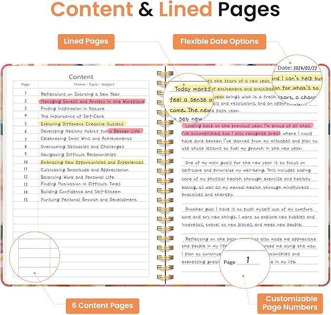 - Sturdy Construction: Our Lined Spiral Journal Notebook is built to last with a sturdy metal twin-wire binding and a tough hardcover. The water-resistant cover shields your notes from damage, while the double-wire design allows for easy folding and flat laying.