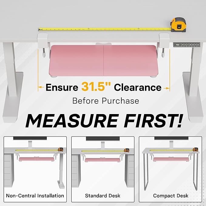 - ✅ MEASURE YOUR DESK BEFORE ORDERING – The tray requires at least 31.5" of width and 11.4" of depth underneath your desk to slide in and out smoothly. Confirm these dimensions to avoid fitment issues