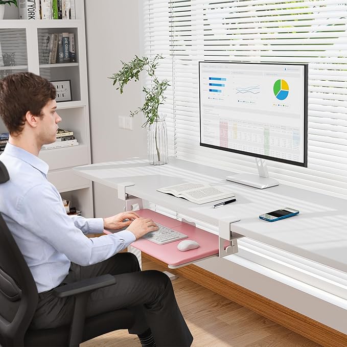 - ✅ MAXIMIZE YOUR DESK SPACE – Free up your desktop by placing your keyboard and mouse on this smooth slide-out tray. The ergonomic position helps reduce wrist strain while keeping your workspace tidy—perfect for offices, remote workstations, and gaming setups