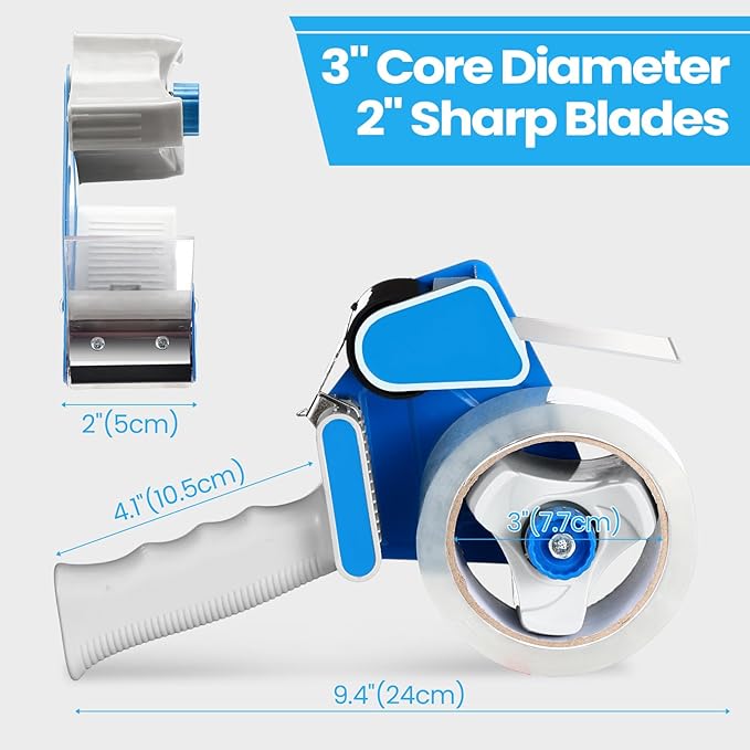 • Product Base Material: the 2 inch packing tape dispenser gun is made with this heavy duty metal mechanism and plastic surface, solid and sturdy; The tape gun handles are useful; These packing tape gun are easy to use, and suitable for handling a lot of sealing, combining, reinforcing, and bundling operations