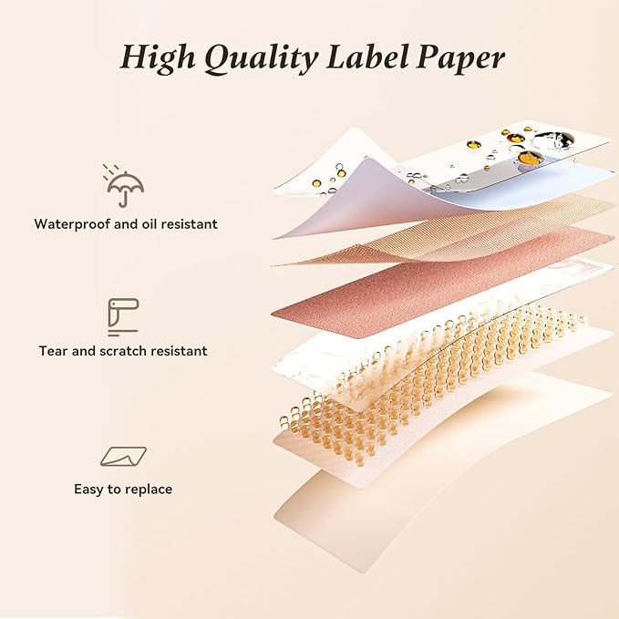- Label Options and Organization: With Intelligent Identification technology, this mini label maker can automatically recognize the label you put in, support a variety size and kind of label paper, such as clear, colorful, cute gift tapes and round labels. The label refills is waterproof and Oil-proof, which can be widely used in Home Kitchen and School. (This label maker is monochrome printout, which only prints black text. We can create color labels buy using color pattern label tapes.)