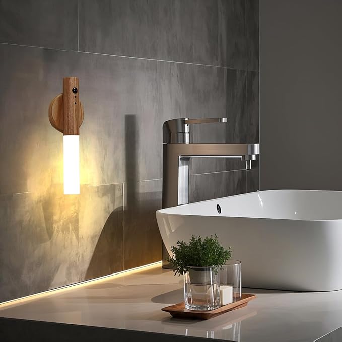 LANDGOO Motion Sensor Night Light RGB & Touch Control | USB-C Rechargeable Ash Wood Wall Sconce | Bathroom/Bedroom Light for Hallway, Stairs, Nursery, Closet, Vanity, Party