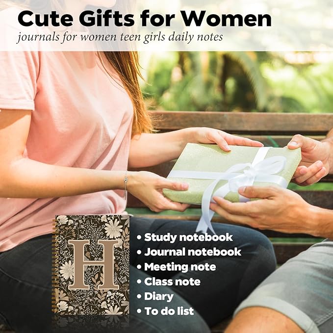 Initial H Personalized Journal Notebook, Boho Floral Journaling Notebooks for Women Girls, Costom Monogrammed Gifts for Women Mom Girls Friends, Letter Spiral Notebook, 5.5x8.3