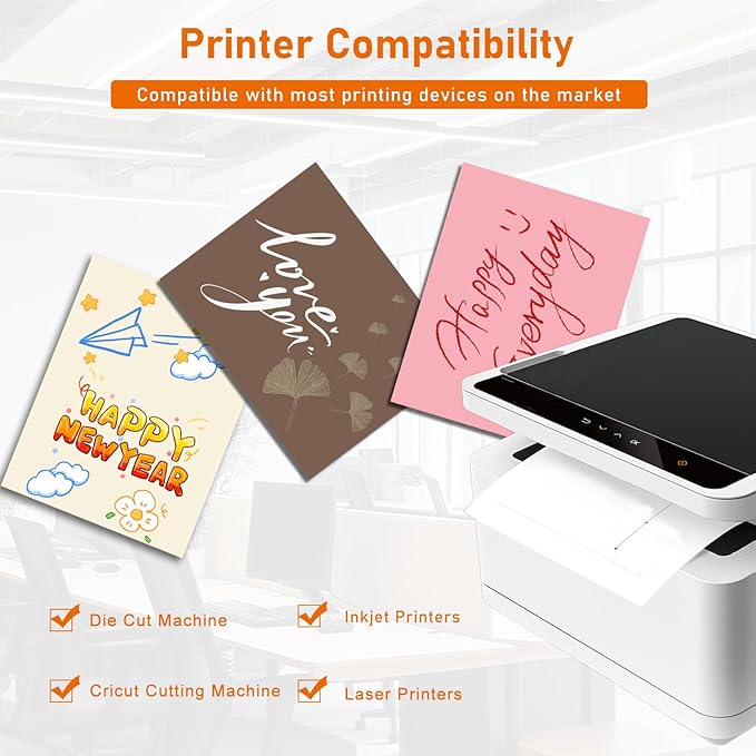 - ▶Printer Compatibility:our thick printer paper card stock is compatible with most types of laser printers, inkjet, die-cutting machines, and cricut cutting machines. Please ensure that your printer can print on 200gsm before ordering