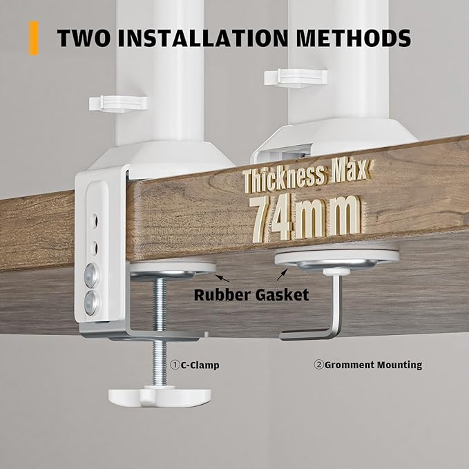 Dual Monitor Articulating Desk Mount Arm Stand - Vertical Stack Screen Supports Two 13 to 34 Inch Computer Monitors with C Clamp White
