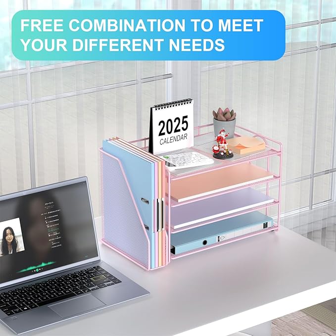 gianotter 4-Tier Paper Organizer With Magazine Holder, Desk Organizers and Accessories, Pink Desk Accessories, File Organizer for Office Supplies Storag(Pink)