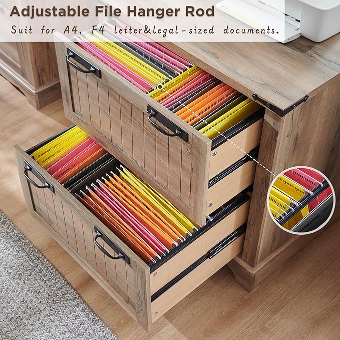 - Sturdy Construction: The filing cabinets are produced from high-quality engineered wood and are built to endure daily application and provide lasting storage. Designed with the customer in the forefront of the mind, this 2-drawer farmhouse file cabinet combines functionality and aesthetics. Tabletop can hold up to 50lbs.
