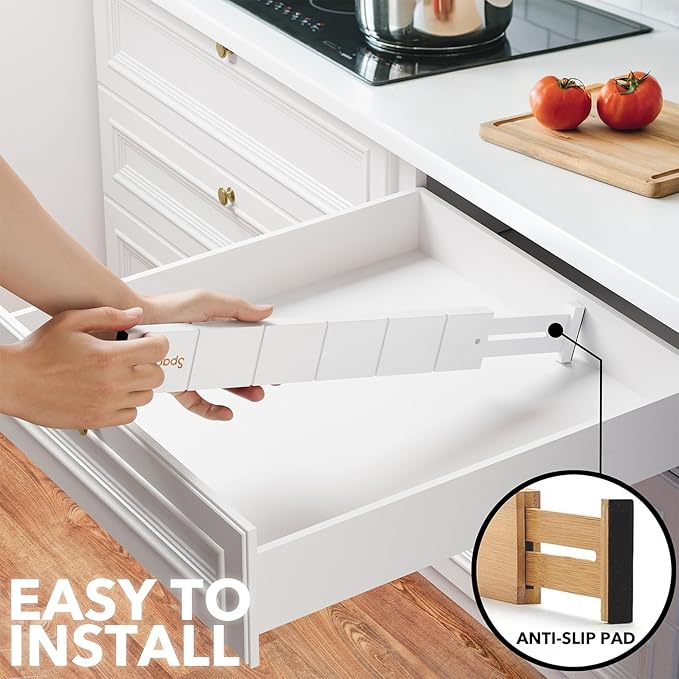 - Drawer Dividers That Stay in Place: Strong spring-loaded design makes them sturdy dividers, with non-slip rubber pads in the end, keeping it stay put all the time and protect your drawers from scratches