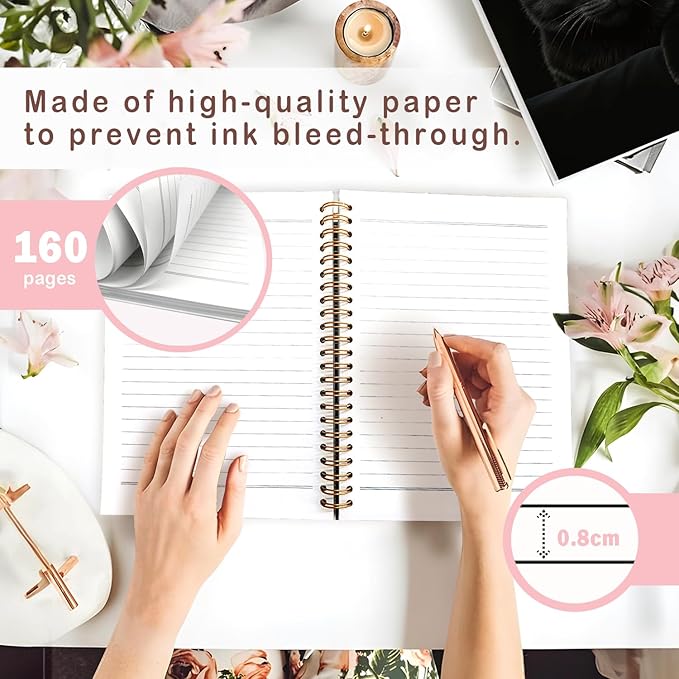 - 【Convenient Size】 Our spiral notebook is approximately 5.5 x 8.3 inches (13.97 x 21.08 cm),80 Sheets -160 Pages . The pages are college-ruled (line spacing: 0.31 inches), ensuring your handwriting remains neat. This size is ideal for your journaling or note-taking needs. It’s also highly portable, allowing you to write anytime and anywhere.