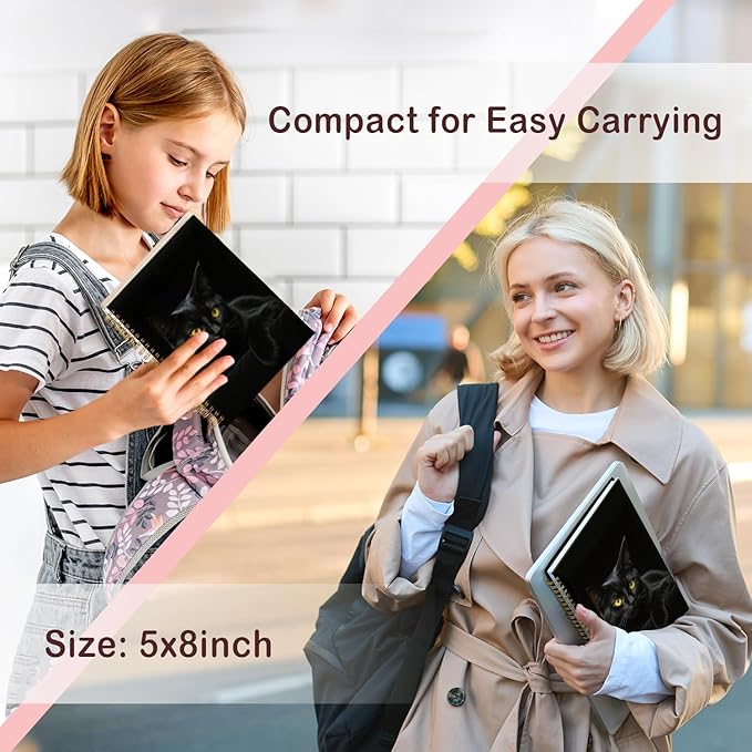 Lacama Cat Notebook Cat Journal, Black Cat Spiral Journal Notebook, Gifts for Cat Lovers, Trendy Cat Notebooks for School and Office Supplies, Cat Stationary 5.5x8.3