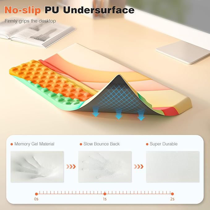 - Massage protrusions relieve wrist pain and fatigue, keep you sweat-free, and maintain perfect comfort while typing on your keyboard pad.