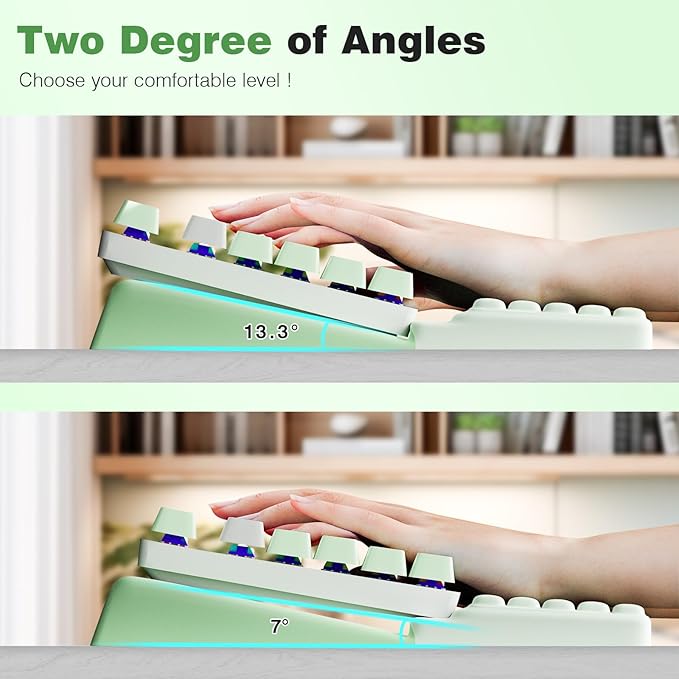 - Works with most keyboards and features two angle settings - adjust the tilt to match how you type for all-day comfort.