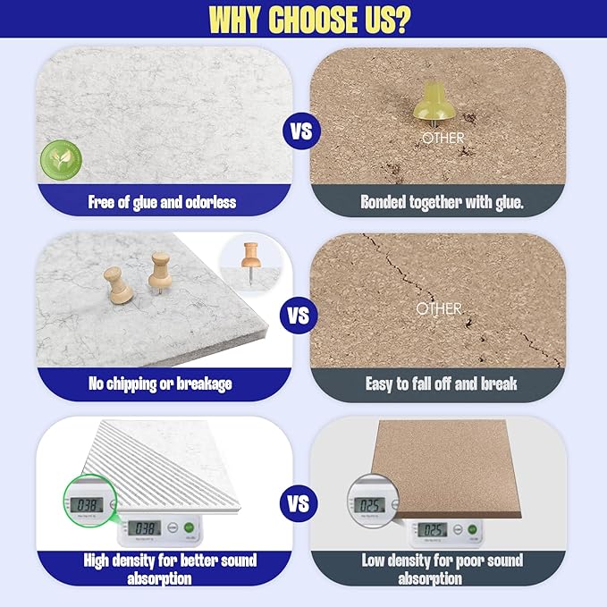 - Sound Absorption: The dense felt cork board helps absorb sound, making it an excellent choice for reducing noise and enhancing acoustics in your office, studio, or home office space