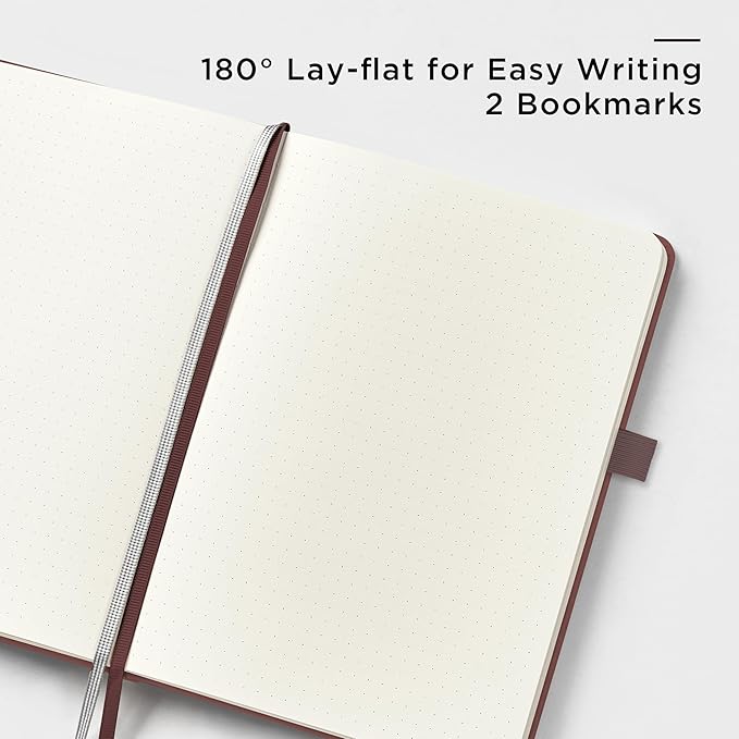 - 180° LAY-FLAT DESIGN: The lay-flat design allows for easy writing and ensures that you can utilize every page efficiently. Journaling, note-taking and planning has never been easier! 2 Bookmarks to help you find important content faster