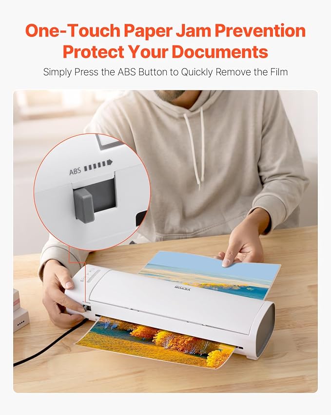 - One-Touch Paper Jam Prevention: Simple to use with an ABS paper release feature. If your paper gets stuck or misaligned, just press the ABS button to easily free it. No more worries about damaging your precious documents.