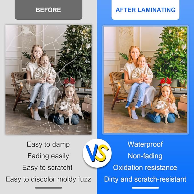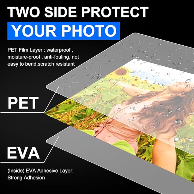 - CREASE PROOF: Thermal laminator needed, not self-adhesive. No bubbles, no shrinkage. The double layer does not come off easily, good plastic sealing performance.