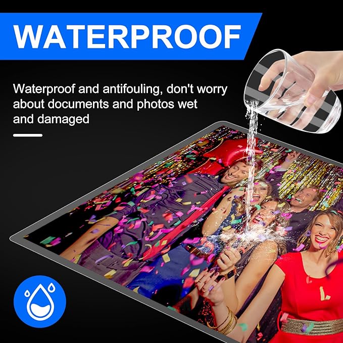 - PREMIUM MATERIAL: Crystal clear, glossy sheen, sturdy and Premium material. Laceration resistant, double coating, anti-stain, practical and waterproof, protect your document from scratching