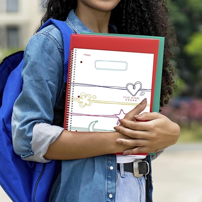 Five Star Spiral Notebook + Study App, 1 Subject, Wide Ruled, 8" x 10-1/2", 80 Sheets, Fights Ink Bleed, Water Resistant Cover, Pastel Doodles (930212F-ECM)