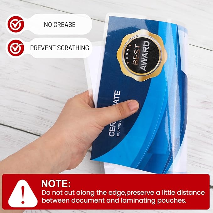 - Application:Perfect for protecting certificates,signs,photos,awards,calendars,kids artworks.It can seal and protect your documents it can be used in classroom, home and office.Compatible with all thermal laminator machine brands
