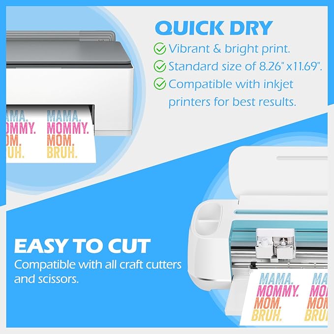 - Printer & Cutter Compatible – This 56 Sheets/Pack A4 standard-sized (8.26" x 11.69") sticker paper for inkjet printer works seamlessly with inkjet printers and is compatible with all craft cutters. It’s also easy to cut with scissors for added convenience, making it the perfect sticker paper for printer.