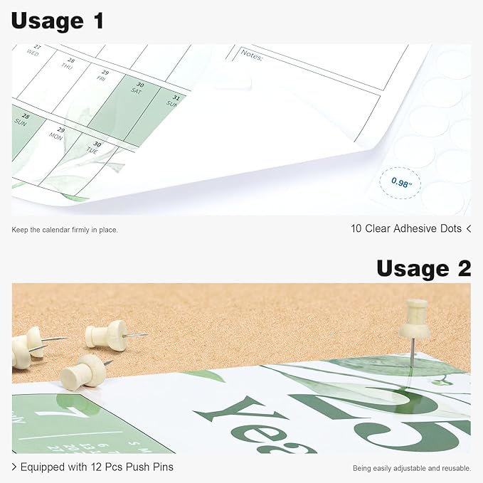 - ✨ 32" x 48" Large Calendar: Single-sided leaf calendar that is easy to hang using transparent adhesive stickers and push pins, and is easy to clean. Monthly calendar keeps you organized and on top of things, even during the busiest and most hectic times of your life.