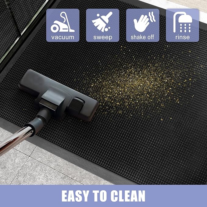 - [EFFECTIVELY ABSORBS DUST AND MOISTURE] Say goodbye to the hassle of bringing dirt and moisture into your home. Our front door mat has thousands of flexible rubber fingertips that effectively absorb dirt, mud and moisture from shoes, keeping floors clean and preventing potential damage.