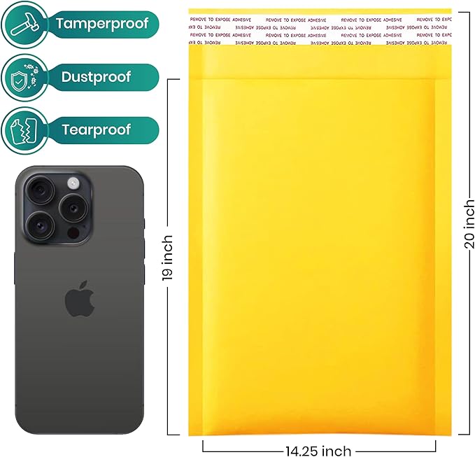 - SIZE SPECIFICATIONS: Pack includes 100 mailers measuring 14.25 x 20 inches, perfect for shipping small items and documents with a usable inner space of 14.25 x 19 inches