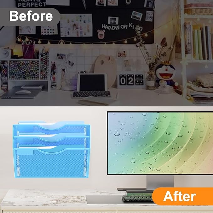 Kuntine.B Wall File Organizer Office Hanging Magazine Holder Wall File Organizer for Office Home (Blue, 3 Tier)