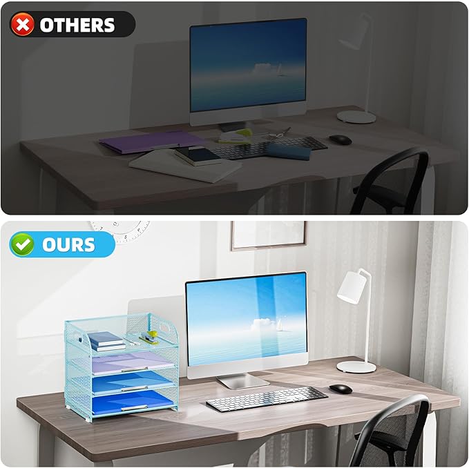 - 【Multi-Purpose Organizer】 4-tier layered design and large capacity make the paper organizer become an ideal choice for managing all kinds of letter-size letters, paper, books, bills, etc. Let you quickly identify the contents of each compartment super easy