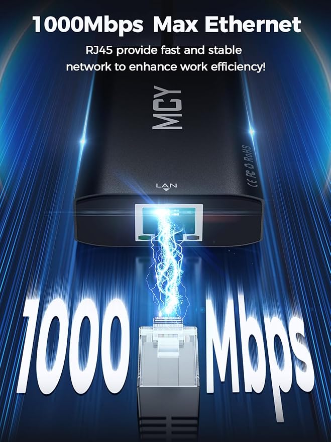 - 【100W PD Pass-Through Fast Charging】The usb laptop hub has a USB Type C 100WPD charging port, which can quickly charge your laptop/tablet/phone when you use other ports. When the thunderbolt usb c hub is fully loaded, there is no need to worry about the laptop losing power. And when you work or play, you can connect to the 1000Mbps Ethernet port of the powered usb c to ethernet adapter, providing you with a stable and fast network, ensuring efficient and fast work and ultra fast internet experience.