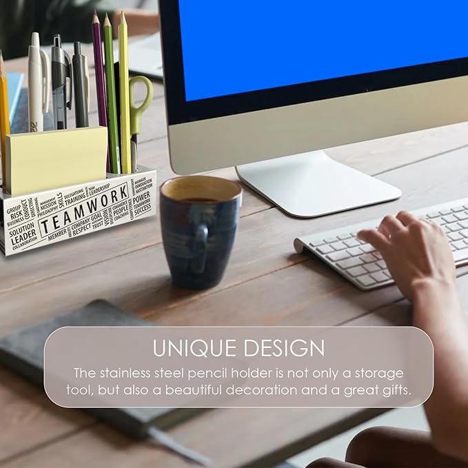 Teamwork Definition Gifts for Women, Men, Employees, Co Worker, Teamwork Team Desk Decor Stainless Steel Pen Pencil Holders WCC57