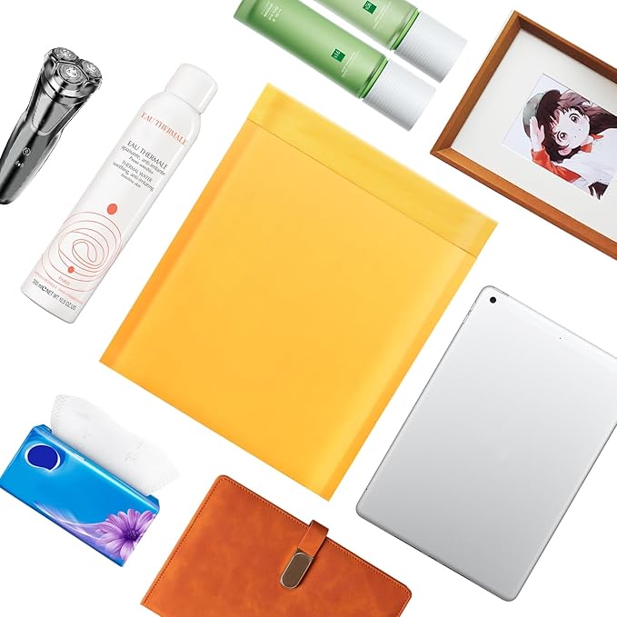 52Pack Yellow 8.5x12in Kraft Bubble Mailers Small Business Mailing Packages Self-Sealing Paper Envelopes, Mailer Shipping Padded Envelopes with Strong Adhesion for Jewelry Makeup Supplies