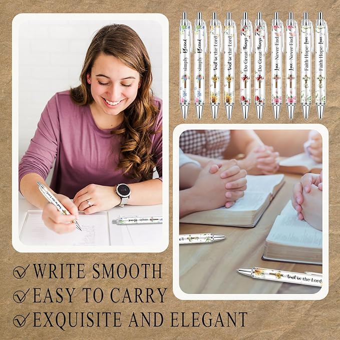 - Nice and Practical Gifts: the bible verse retractable ballpoint pen is pretty and practical, you can send it as a gift for your family, friends, coworkers and other people on Christmas, Thanksgiving, New Year's Day and other holiday; You can also use them as office rewards for your employees