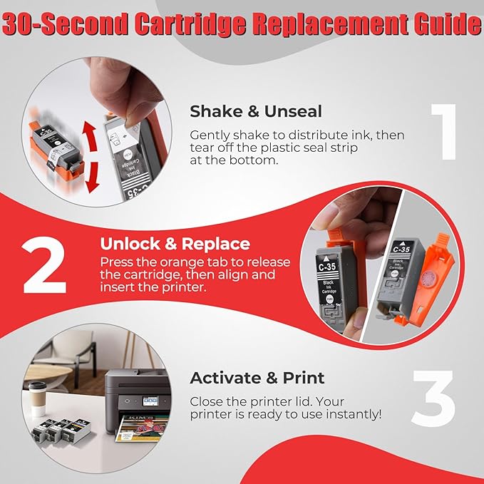 - PGI35 CLI36 Ink Cartridges Product Performance: PGI35 CLI36 ink cartridge is engineered to produce clear and sharp prints for photos, documents, and text. It provides reliable performance and consistent quality, offering solid value for your printing needs