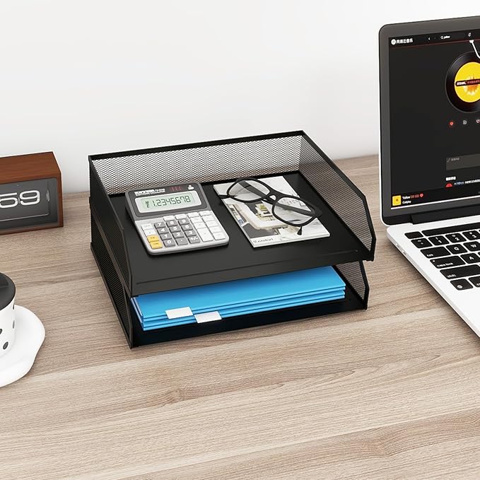 - 【Durable & Sturdy】The 2 tier desk organizer is made of high-density metal mesh, and thick iron tray to avoid deformation. Reasonable structure, strong and durable paper tray.