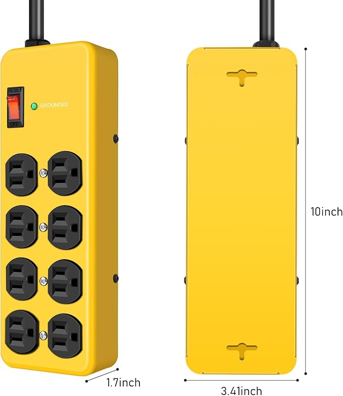 - Metal power strip:Made of sturdy metal case for durability.Ideal for challenging harsh and hostile environments,prevents material breakage,such as workshops,garages,workbenches,factories,etc.